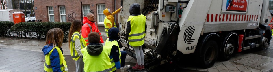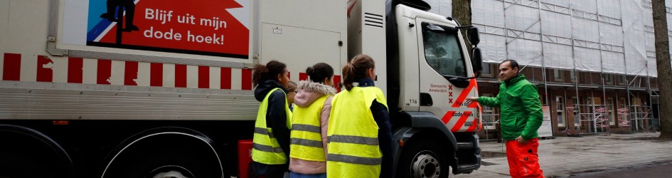 Kinderen komen in het verkeer regelmatig vrachtwagens tegen. Zij zien de vrachtwagen vaak wel, maar ziet de chauffeur hen ook? In een drukke stad zoals Amsterdam is verkeerseducatie letterlijk levensbelangrijk! Verkeersplein Amsterdam verzorgt Dode Hoeklessen op basisscholen in Amsterdam voor groep 6,7, en 8. Met echte vrachtauto's en chauffeurs van Afvalinzameling van de gemeente Amsterdam, in samenwerking met Transport en Logistiek Nederland.